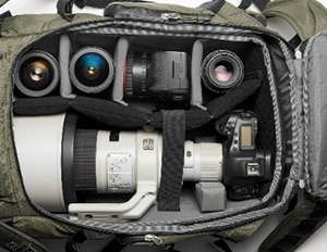 - 70-200mm F4レンズ付き一眼レフカメラ+予備カメラボディ+交換レンズ4本が収納可能