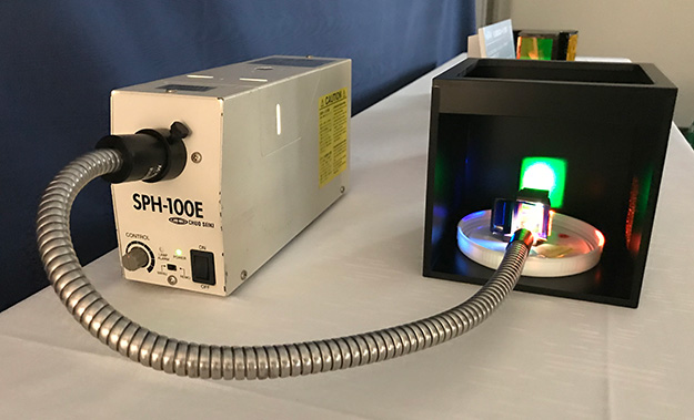 光を自在にコントロールするコーティング技術として、同社の色分解プリズムの展示も行われていた。コーティング技術により白い光で入ってきたものをRGBカラーに変換する。3板式イメージセンサーカメラに必要な技術。同社のプリズムは放送用途だけでなく、多くのカテゴリーのカメラに採用されているようだ