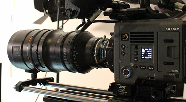 HK4.7と武蔵オプティカル社製の拡大光学アダプターOptMag for Full-Frameを組み合わせることで、4Kオーバーの高解像度をフルサイズカメラでも使用可能になるという。レンズ・アダプターともにフランジバック調整機構がありシム調整が不要。会場ではSonyのVENICEと組み合わせた展示が行われた