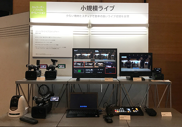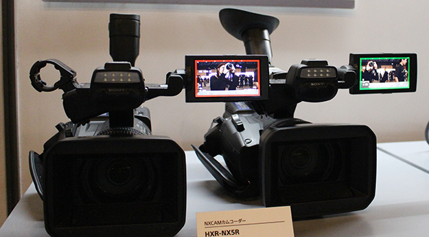 会場ではNXCAMカムコーダー「HXR-NX5R」と組み合わせた展示を行っており、タリー表示を行っていた。左:PGM、右:PREVIEW(NEXT)