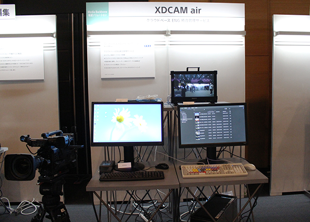 クラウドベースENG総合管理サービス「XDCAM Air」。ワイヤレス取材ワークフローの管理や、デュアルリンクLTE、1080/60i 10Mbpsに対応したストリーミング、プロキシファイルの転送/プレビューなどが可能。また、将来アップデートにて報道支援と連携し、カムコーダーへ取材メタデータの自動転送が可能となる