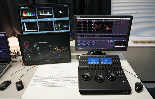 来栖氏:グレーディング室には、以前からDaVinci Resolve Advanced Panelを導入していました。今回のリニューアルにあたり、DaVinci Resolve StudioとMini Panelを各オンライン室に導入したことで、オンライン編集時にも色の微調整が行えるようになりました。そのため、グレーディング室に戻す手間が省け、時間の効率化につながりました。