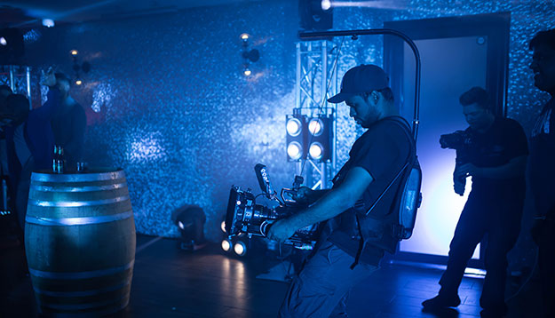 シャルマ氏:パンジャーブのMVは、常にストーリー性があります。Ashはダンスクラブで繰り広げられるエキサイティングなストーリーを思い描いていました。ダンスフロアのドラマチックな照明の中、ワイドショットとクローズショットが入り混じる映像です。私は、すばやく切り替わる照明をイメージしていたのですが、URSA Mini Proの高ダイナミックレンジと内蔵NDフィルターはまさに最適でした。