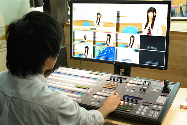 ブルーバックに人物などをはめ込むには、ATEM 1 M/E Production Studio 4Kだけの機能ではフレーム数が足りないため、動画を再生できるシステムとしてATEM 1 M/E Production Studio 4KおよびHyperDeck Studio Proを併せて導入した。HyperDeck Studio ProにはATEM 1 M/E Production Studio 4Kの入力と出力が繋がっており収録もできる。そして、ATEM 2 M/E Broadcast PanelでHyperDeck Studio Proの収録と再生のリモートコントロールを実現している。
