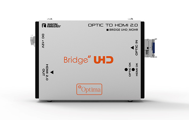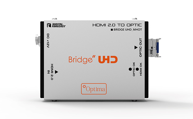 UHD_M_HOTとUHD_M_OHRは、4K UHD対応HDMI2.0信号を光ファイバーケーブルで延長可能なHDMI光延長器。送信機のUHD_M_HOTと受信機のUHD_M_OHR間を1本のシングルモード光ファイバーで接続し、最長10kmの伝送が可能。伝送路に光ファイバーを採用する事でHDMI信号が苦手とする長距離伝送を手軽に、かつ電気的ノイズの影響を受けずに伝送できるという。