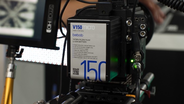 VMICROシリーズは、ドイツのbebob社の小型軽量タイプのバッテリー。これまでのバッテリーをREDなどの小型のカメラに装着すると上にはみ出してしまうことがあったが、VMICROシリーズは小型なのでREDの本体とマッチする。