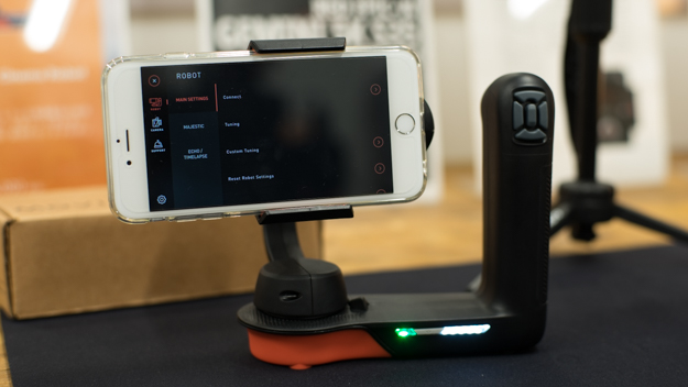 Freeflyの「MoVI」は、スマートフォンに対応するスタビライザー。価格は36,000円で、iOS 11以降のMovi Appが動作するアップルのiPhonのみに対応する。