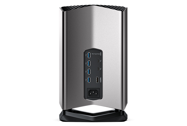 グラフィックおよび計算アクセラレーションに加え、Blackmagic eGPUは様々なデバイスを接続するドッキングハブとしても最適だとしており、キーボード、マウス、Thunderboltモニター、大画面HDMIテレビ、高速ストレージなどを接続して使可能。2つのThunderbolt 3(40Gb/s)、4つの内蔵USBハブ、1つの4K出力対応HDMIを搭載。インターフェースは人間工学に基づいて配置されているため、周辺機器のすばやい接続、取り外しが可能だという。