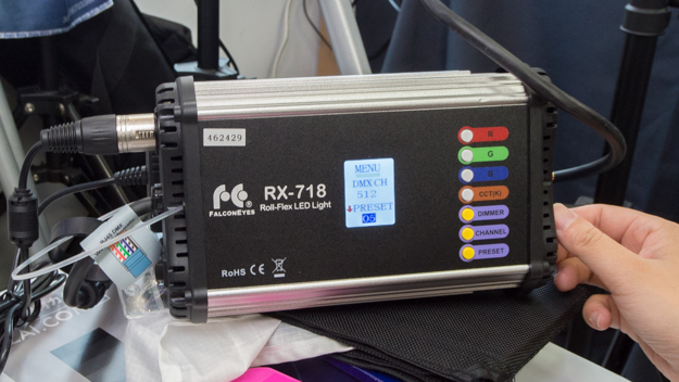 プロ機材ドットコムでは、あらかじめRGBで作って登録をすることができるロールフレックスLEDライトのニューモデルを展示。背景紙を交換は手間のかかる作業だが、同製品を使うことにより手軽に背景の色を変えられたり、ドラマや映画の女優の顔に赤、黄色、緑の信号の点滅を表現するなどに使えるとのこと。
