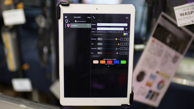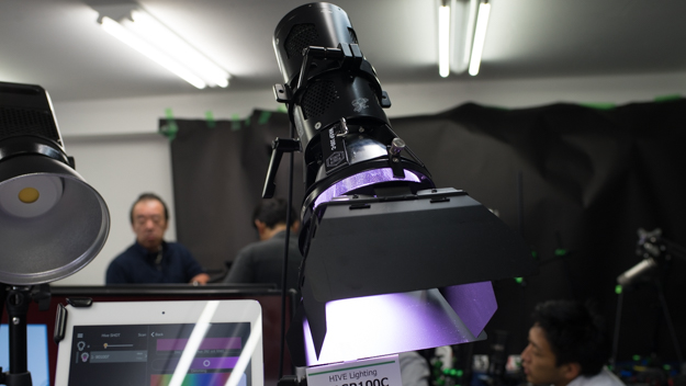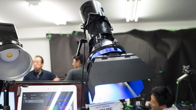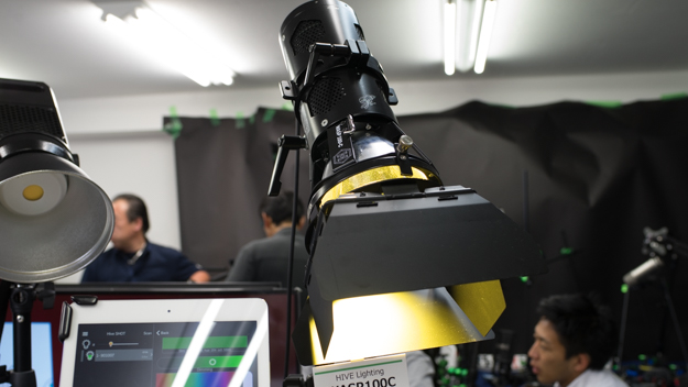KPIはライトを中心に展示。その中でも目立っていたのは、100Wの消費電力でタングステンライトの650Wと同等の出力を持つ「WASP 100-C」。iPhoneやiPadのアプリから調光、彩度、色相、色温度などパラメータを変更することが可能。メインの被写体への投影に使えるが、白ホリに色を付けて演出に使われるのが多いのではないかとのことだ。