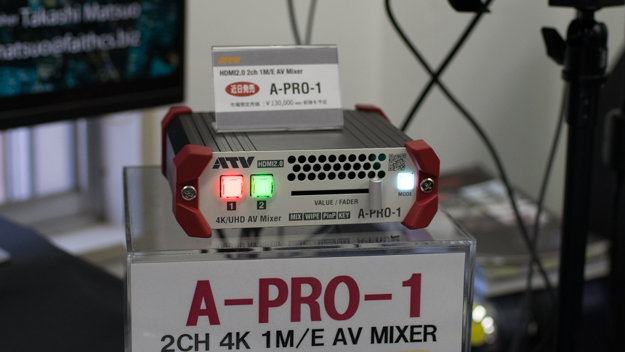 ミキサーやスイッチャー、コンバーターを4種類展示。「A-PRO-4」は2KのAVミキサーで、SDI2系統、HDMI2系統の4入力に対応。ディゾルブ、カット、ワイプ、ピクチャ・イン・ピクチャなど一通りの機能をもっている。クロマキーにも対応する。