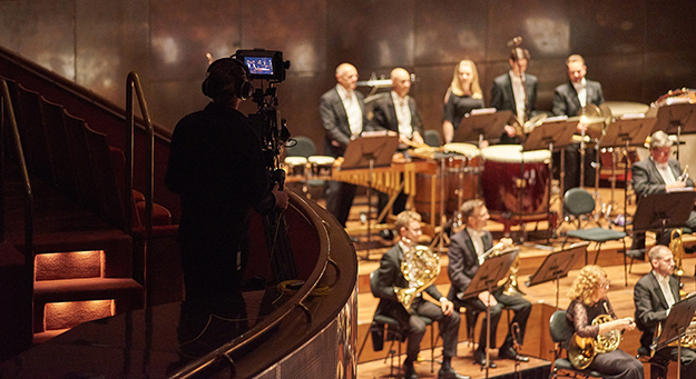 URSA Broadcast、URSA Mini 4.6Kは3人のオペレーターによりセットアップされた。URSA Broadcastはステージに対して45度に設定され、オーケストラ全体のショットとソロリストのクローズアップを撮れるよう、2階席の高さに設置した。URSA Mini 4.6K EFは、ワイドショット撮影用に後方に設置され、5台のMicro Studio Camera 4Kはオーケストラメンバーの間に配置した。弦楽器、金管楽器、ティンパニー、ピアノのエリア、そして最後の1台は指揮者の前に設置された。この「指揮者カメラ」は、指揮者が視聴者に向き合っているような効果を生じさせる。