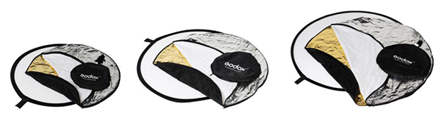 左から5in1リフレクターディスク60cm、80cm、110cm