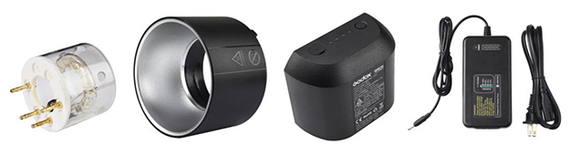 AD600 Proの標準で付属しているフラッシュチューブ、リフレクターAD-R9、リチウムバッテリーWB26、バッテリーチャージャーWC26の単体発売。予備用。
