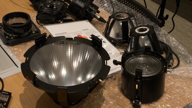 左下はスーパースポットリフレクター、右下はフレネル、中央上はPARリフレクター