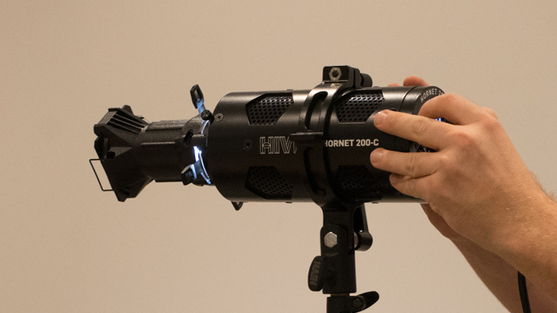 特殊なアダプタープレートを使用することでETCのMini LekoアタッチメントがすべてのCシリーズライトに対応。これにより、精密なスポットライトが可能になる。