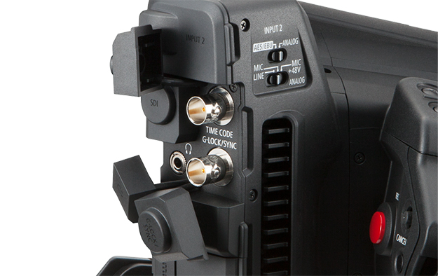12G-SDI端子、HDMI端子を搭載しており、4K/HDR映像や、記録時の方式とは異なる方式の映像をケーブル1本で出力可能