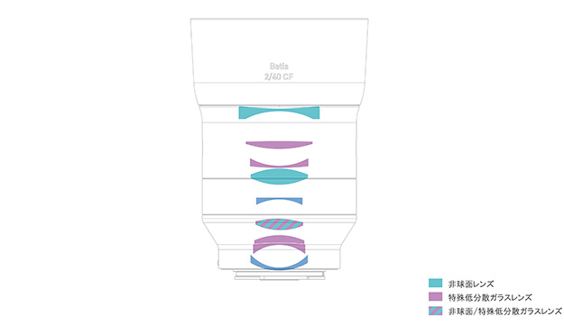 ZEISS Batis 2/40 CFは、ソニーα7シリーズで使用可能な単焦点オートフォーカスEマウントレンズシリーズ「Batis」で、焦点距離40mmのレンズ。最短撮影距離24cmを活かしたクローズフォーカス撮影から、40mmの画角ならではのストリートスナップ、風景撮影も可能だとしている。主な仕様は以下の通り。