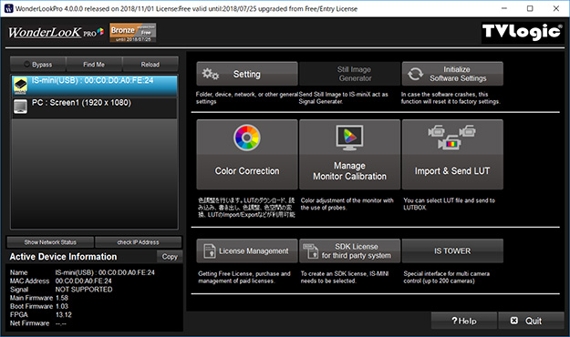 WonderLookProのBronzeライセンス(Standardライセンス相当)の無償提供を開始した。TVLogic版WonderLookPro v4.0では、IS-mini、IS-miniXユーザーに、Bronzeライセンスへの自動アップグレードを提供している。