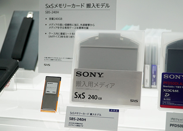 PZW-4000専用メディア「SBS-240H」は、外部衝撃からメディアを保護する専用ケースを標準付属。従来よりもサイズを大きくし、ケース内に収録内容を記載した番組シートの収納が可能。また、ケース収納により棚管理にも適しているという。240GBのSBS-240H 1枚に、XAVC-L422 QFHD 200コーデックで100分以上の記録が可能だ。