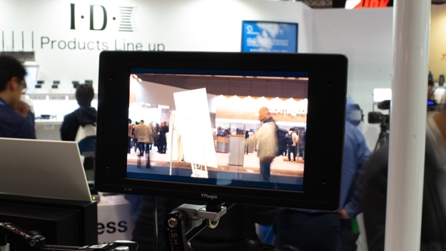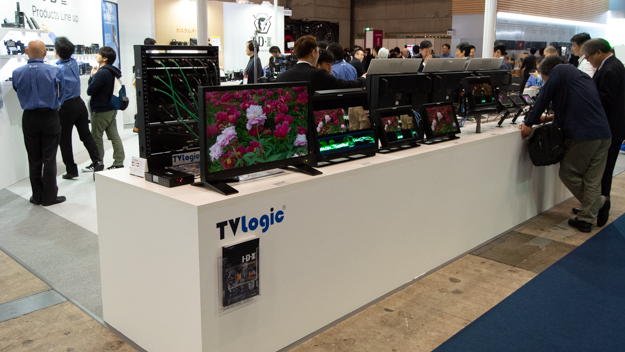 今年のアイ・ディー・エクスブースでもっとも変わったのが、TVLogicのモニター郡の展示だ。TVLogicは、韓国の放送用専門のディスプレイメーカーで、これまでTVLogicの製品は控え目な展示であった。今年はモニターメーカーかと思うぐらいブースにズラリと並べられている。