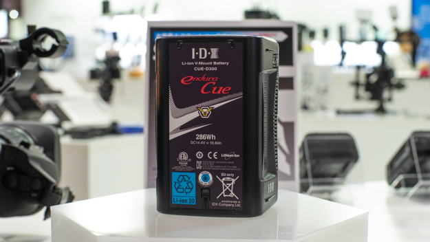 新製品の中でも特に話題なのが286Whの大容量バッテリー「CUE-D300」(2019年1月発売予定)。最近のカムコーダーやライトはどんどんと消費電力の高い製品が増えてきて、同社でもっとも大容量なVマウントタイプリチウムイオンバッテリー「DUO-C198」を使っても約1時間しかもたないことが起きていた。そこで、シネマカメラやライト向けとして300Wクラスの容量を実現したのがCUE-D300だ。
