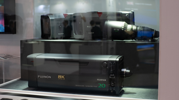 8Kカメラは各社から登場してきているが、8Kレンズをそのまま付けるとシステムサイズが大きくなってしまったり、システムコストが高額になってしまうため、富士フイルムでは、HK/ZKシリーズなどの4Kオーバーの実力を持っているレンズを8Kのカメラに付けて画を出して紹介。8Kの撮影でも機動性が活かせることをアピールしていた。