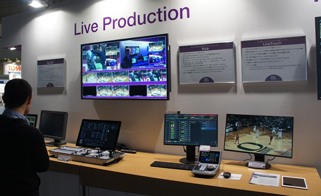 ライブプロダクションコーナーではシステムカメラLDX C82が搭載されたロボティックカメラシステムRS-LDXやプロダクションスイッチャーKula、リプレイシステムLiveTouchなどを展示