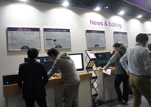 News&EditingコーナーではEDIUS 9の最新バージョン9.3が搭載された編集システムHDWS 4K3 EliteやREXCEED Z4000のほか、クラウド編集システムEDIUS Cloudなどを出展