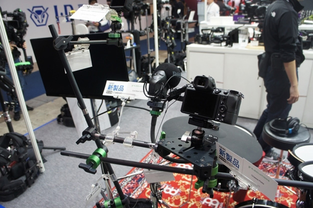 撮影に必要なアクセサリーを豊富に揃える銀一は、今回デジタル一眼や小型ビデオカメラなどで手軽に移動撮影が行えるモーションコントロールシステムSyrp(シロップ)の新型や、昨年のCineGearで発表されたSteadicam(ステディカム)のM-1 Volt、今年の8月に発売となったAir25のほか、アンビソニックマイクとしてRODE Microphones(ロードマイクロフォンズ)のNT-SF1を国内初公開した。Vマウントバッテリーを電源にAC100VおよびUSB充電用電源を供給できるDC-ACコンバーターTetherTools(テザーツールズ)のオンサイトパワーシリーズなども出展。