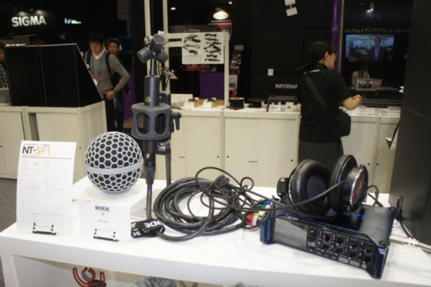 RODE MicrophonesのアンビソニックマイクNT-SF1は新しいマイクカプセルを使用し、ローノイズ設計でSNの良い正確な集音が可能。特性の揃ったマイクを搭載しており、マルチチャンネルレコーダーに接続し、4チャンネルのA-フォーマット録音に対応。ブースではZOOMのF8に接続してデモしていた