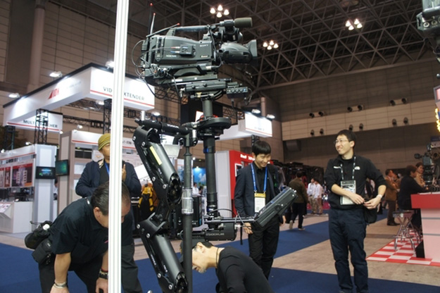 Steadicamは昨年のシネギアで発表されたM-1 Voltのほか、今年の8月に発売となったAir25などを出展。ステディカムに取り付けてモーター制御することで、不要なロールを抑制し、ティルト方向の制御が可能なアクセサリーや新製品のAir25を装着して体験できるデモなどを行っていた