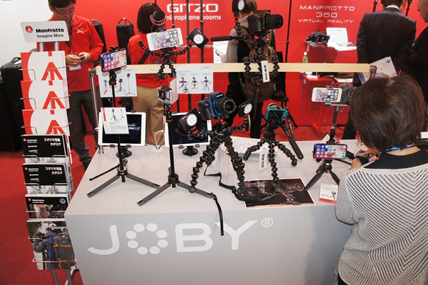 先般Vitecグループに入ったJOBYのコーナーにはスマホやコンパクトデジカメなど、ネット配信などの極力重量を制限しながらも安定した撮影ができるアイテムを揃えていた