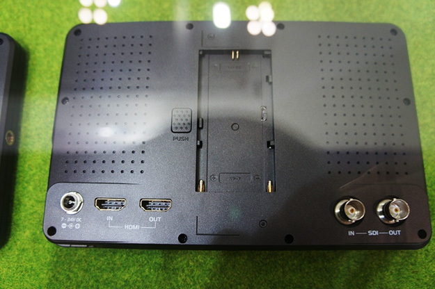 フィールドモニター75SBにはHDMIやSDIのスルー端子を備えている。電源は7-24Vまでのワイドレンジ対応