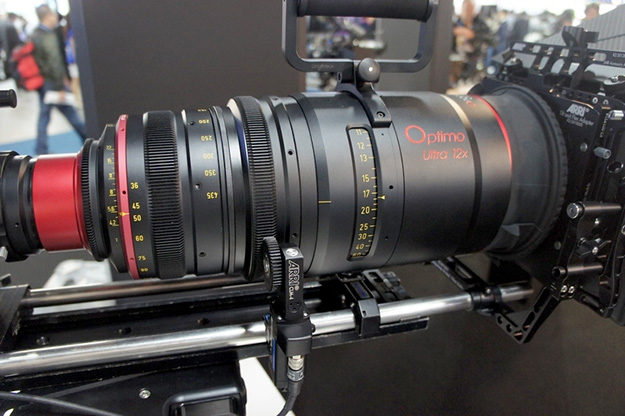 新製品のマルチフォーマットに対応した高倍率ズームレンズAngenieux Optimo Ultra 12x。S35 (φ31.1mm)、U35 (φ34.6mm)、FF/VV (φ46.3mm)の3種類のイメージサークルに対応している