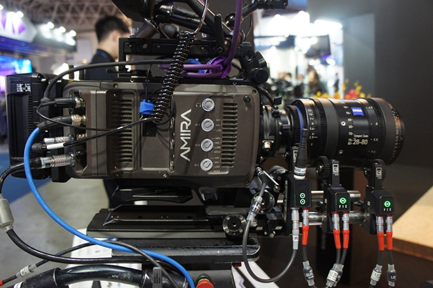 HD/2K/4K UHD対応のARRI AMIRA。ARRIのワイヤレスレンズコントロール受信機を内蔵した新製品CフォースミニRFとともに出展。ARRI AMIRAはProRes収録のほか別売の追加ライセンスでARRIRAW収録に対応した。ProResHD時は最大200コマ/秒のハイスピード撮影が可能