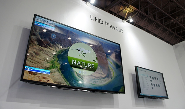 UHD Playout。SpectrumX UHDによるHDRファイルのプレーアウト。SpectrumXのコーデックエンジンはxAVC300 2160pをサポートしており高品質な4K HDR再生が可能
