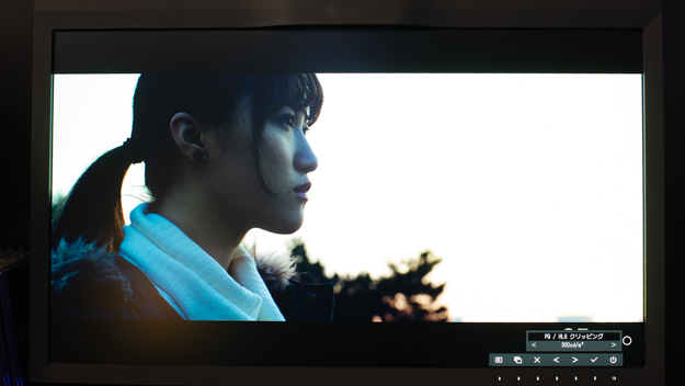 クリッピング機能を「300cd/m2」に設定した場合。低階調部分の確認や明るさはHDRで見た明るさと近い表示状態