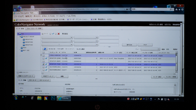 また、ネットワーク上でモニターを一括管理するソリューション「ColorNavigator Network」も展示。従来映像制作で大量のモニターを使われるプロダクションの場合、一台ずつ実機の前に出向いて調整する作業はかなり手間になっていた。そういった作業を、ネットワーク上に管理サーバーを置いて遠隔的に管理ができるものだ。