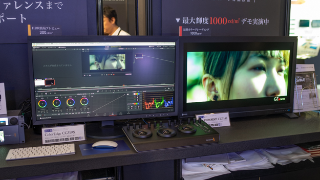別コーナーでは、編集側のモニターはCG319X、最終的なプレビュー用は最大1000cd/m2まで表示できるCG3145を組み合わせてポストプロダクションのカラーグレーディングシステムを意識した4Kリファレンス環境の提案を展示。