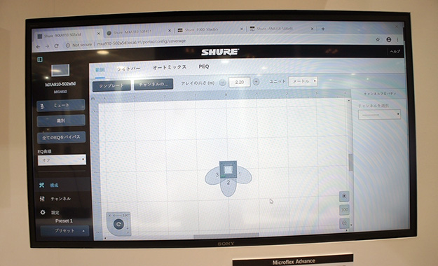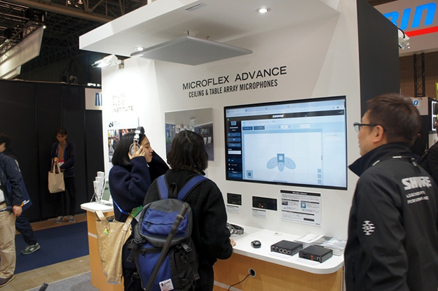 Microflex Advanceは2011年にAVコミュニケーションのソリューションを提供する世界有数の企業であるInformationsteknikを買収したことから、近年Shureが力を入れている分野である。ブースの一角に会議室をしつらえ実際の会議室と同様な環境を作ってMicroflex Advanceをアッピールしていた。