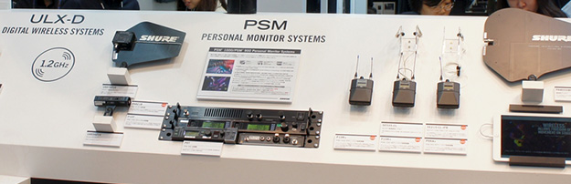 ブース中央にAXT Digitalシリーズを大きく取り上げたコーナーを設置。ShowLinkリモートコントロール、Shure Wireless Workbenchソフトウェア、ShurePlus Channelsアプリ、ネットワーク・バッテリー・モニタリングにより、シームレスなワイヤレス運用に必要な優れた操作性と情報把握を可能にしている。用途に合わせたシステム構成、多様な外部デバイスとの接続性、統合的なコントロールにより、現代のワイヤレス環境における多くの課題に対処