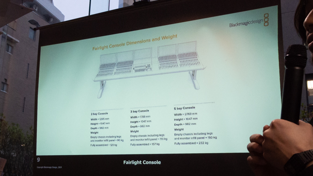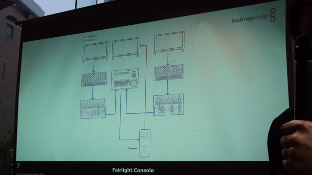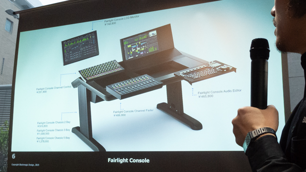 皆さんの中では、Blackmagic Designというビデオの会社が、Fairlightというオーディオのテクノロジーに関してどういう考えを持っているか、というのを不思議に思う方もいらっしゃるかもしれません。それに対する答えは、すでに何百万ドル。つまり何億円も実は、Fairlightのコンソールに投資をしておりますので、その1点を見ていただいてもうちはFairlightにコミットしているというのがおわかりいただければと思います。