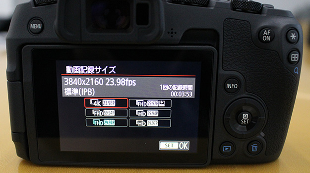 4K・UHD(3840×2160)の内部記録が可能で、フレームレートは23.98p/25.00p。4K撮影時、常用最高ISO感度12800に設定可能。ファインダーを覗いたままでも動画撮影が行えるため、液晶モニターへの光の反射が気になる日中撮影にも便利だ。記録形式はMP4。4K動画の1フレームを、約830万画素(3840×2160)の画像としてJPEGで保存できる。また、4Kタイムラプス動画にも対応しており、一定間隔で撮影した静止画をつなげ、4K UHD(3840×2160)動画として記録・再生が可能。