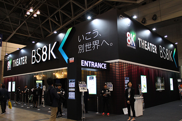 NHKブースでは「8Kスーパーハイビジョンシアター」を設置。300インチ大画面スクリーンにて、紅白歌合戦のダイジェストや、NHK杯フィギュアなどの8Kコンテンツの上映を行った。ハイビジョンの16倍の超高精細映像と22.2ch立体音響による映像は、目の前で物事が繰り広げられているかのような臨場感が味わえる。