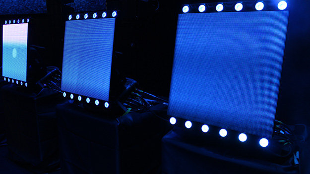 ムービングLEDパネル「Wing Panel」を搭載し、スポットライトも連動した空間演出が可能。LEDはIP65/3.9mmピッチ/3800cdと高輝度高精細。スポットライト部は10w/6×2/6度レンズにより力強いビームを出力している
