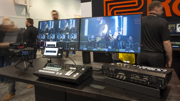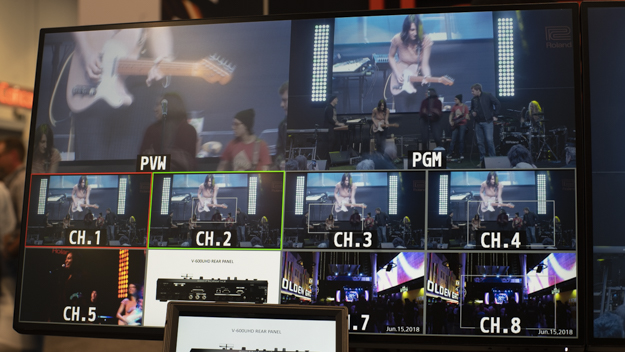 V-600UHDは、ローランド初の4K HDR対応スイッチャーだ。北米では初の出展となる。6チャンネル入力のうち、4つがHDMI2.0、2つが12G-SDI。3チャンネル出力のうち、3つがHDMIアウト。そのほか、1つのマルチビューアウト、1つのSDIアウトが並んでいる。