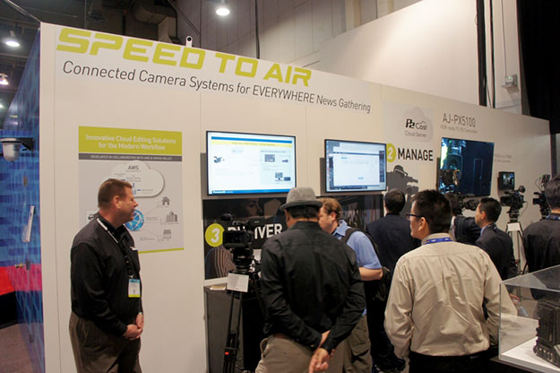 また、P2シリーズにおける新ワークフローソリューションP2 Cast on AWSにより編集から配信までをクラウド上で一括して行なえるシステムや4K映像とIP 伝送(ST2110準拠)に対応し、ユーザーニーズに応じたシステム構築の柔軟性や拡張性を備えた、新発想の放送用スイッチャーシステムシリーズLPS(Live Production Suite)などを出展した。