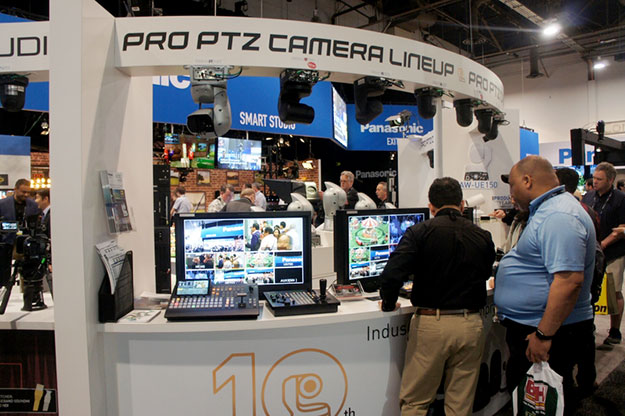 パナソニックは昨年に引き続き、映画製作やテレビスタジオ向け、イベントなどのライブ収録などのソリューションに合わせ7つのコーナーで新製品を中心とした出展を行った。リモートカメラシステムが今年で10周年を迎えることからこれまでの歩みも紹介する展示も行われた。