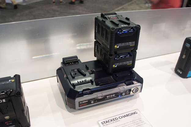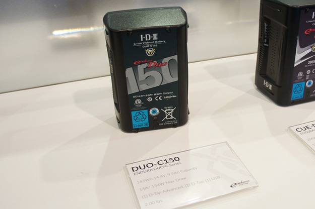 IDXは連結して使用できるIPL-98およびIPL-150や、4連Vマウント対応チャージャーVL-4X、D-TapやUSB端子を搭載したVマウントバッテリーDUO-C150、バッテリーの充電状態を5段階のLED表示可能なCUE-D300などの新製品を出展。